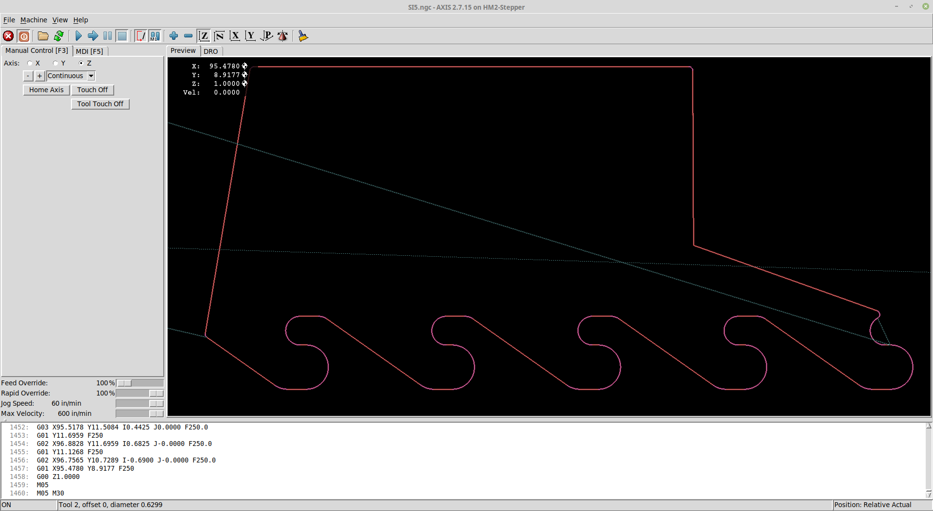 The toolpath is in three passes, and as the photo of the result shows, pass #1 does not superimpose pass #2 or #3.