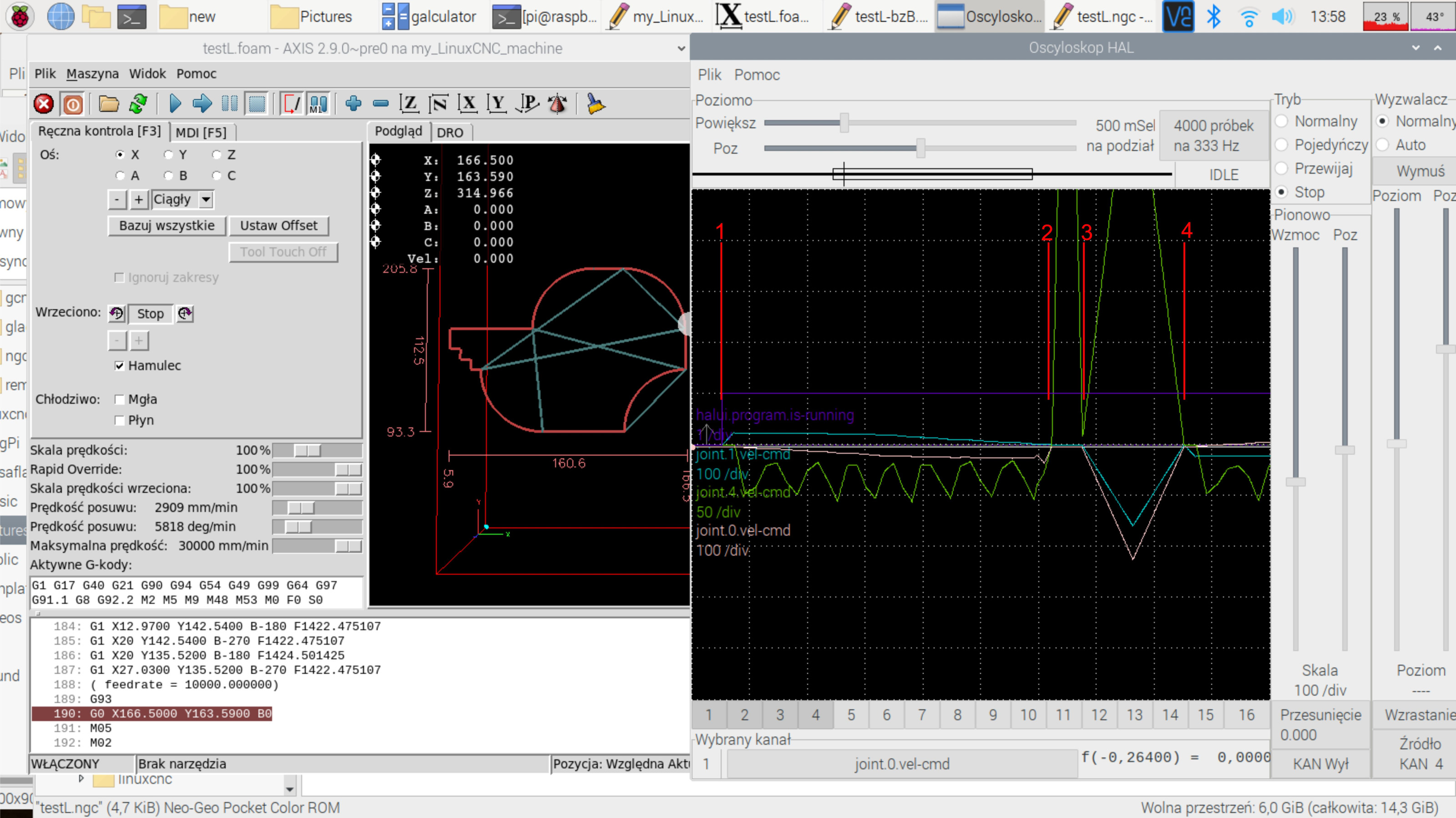 Pic 5 - Gcode "testL.ngc" and filter in python to convert to G93 move