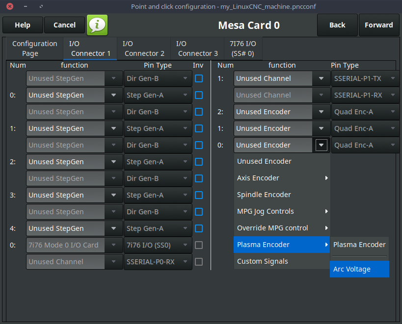 Thats why we need all of Tom's config. I think he moved it to another hal fileI don't see any arc voltage encoder in your hal file, it should have been selected in PnCconf as below: