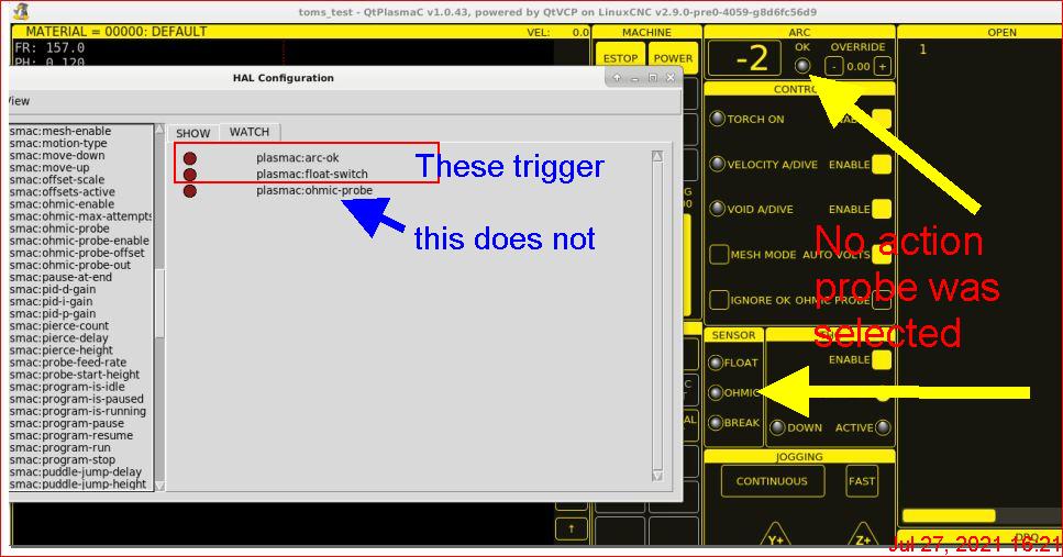 Ohmic sensor does not show any action on screen or in Hal show.  does it need a offset value to be entered like the arc voltage did??