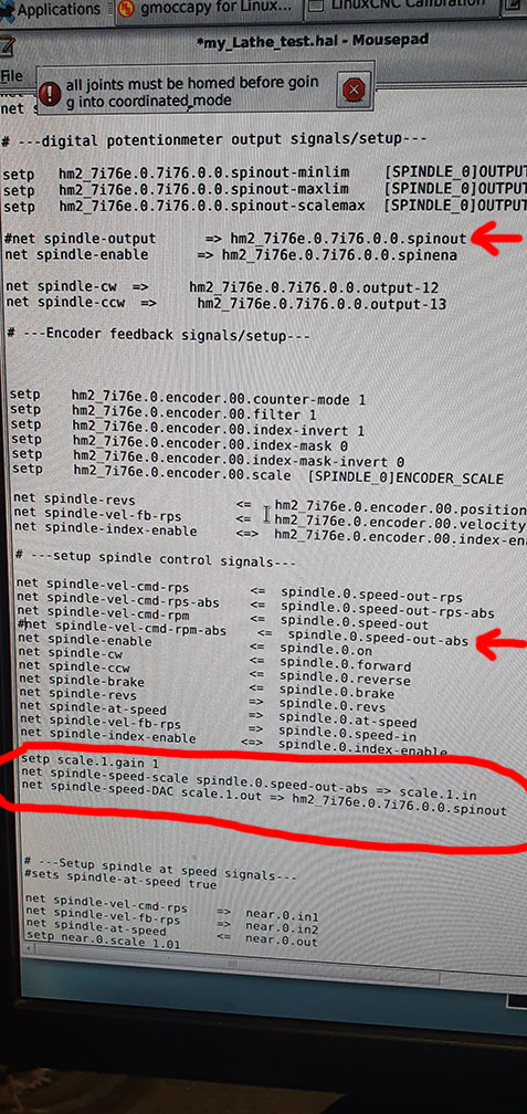 The other problem is that i get not spindle feedback but the encoder is wired for sure correctly and in the hal meter i can see at the encoder.00.xxxxx commands that the encoder is also connected with Linuxcnc. I am pretty sure that something is missing in the file, but i cant figure out what.