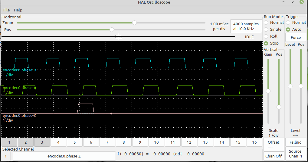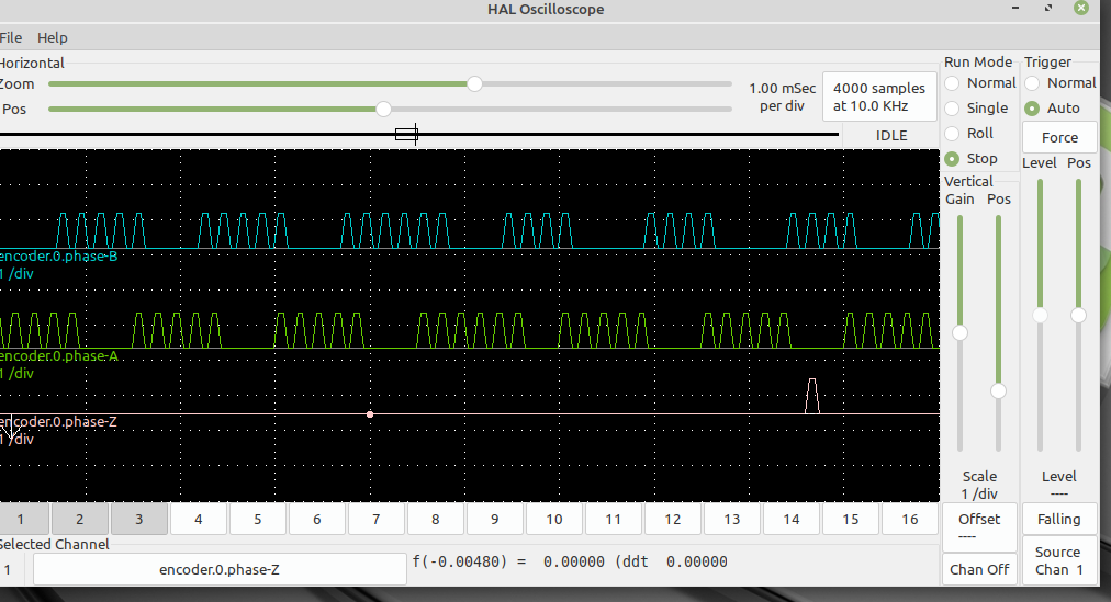 To get a better Halscope view, you should set it sample the inputs at the base thread rate rather than the servo thread rate