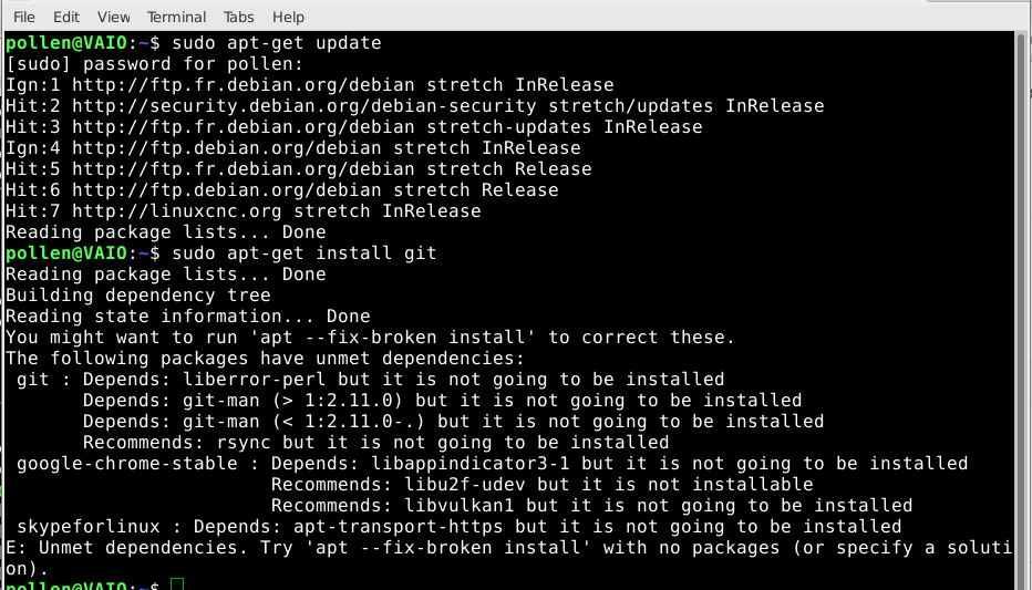 Hello, I am trying to make my pendant work following a youtube tutorial made by talla83. And when I am trying to install ''git'', I get the following message and it doesn't install. Can someone help me please?