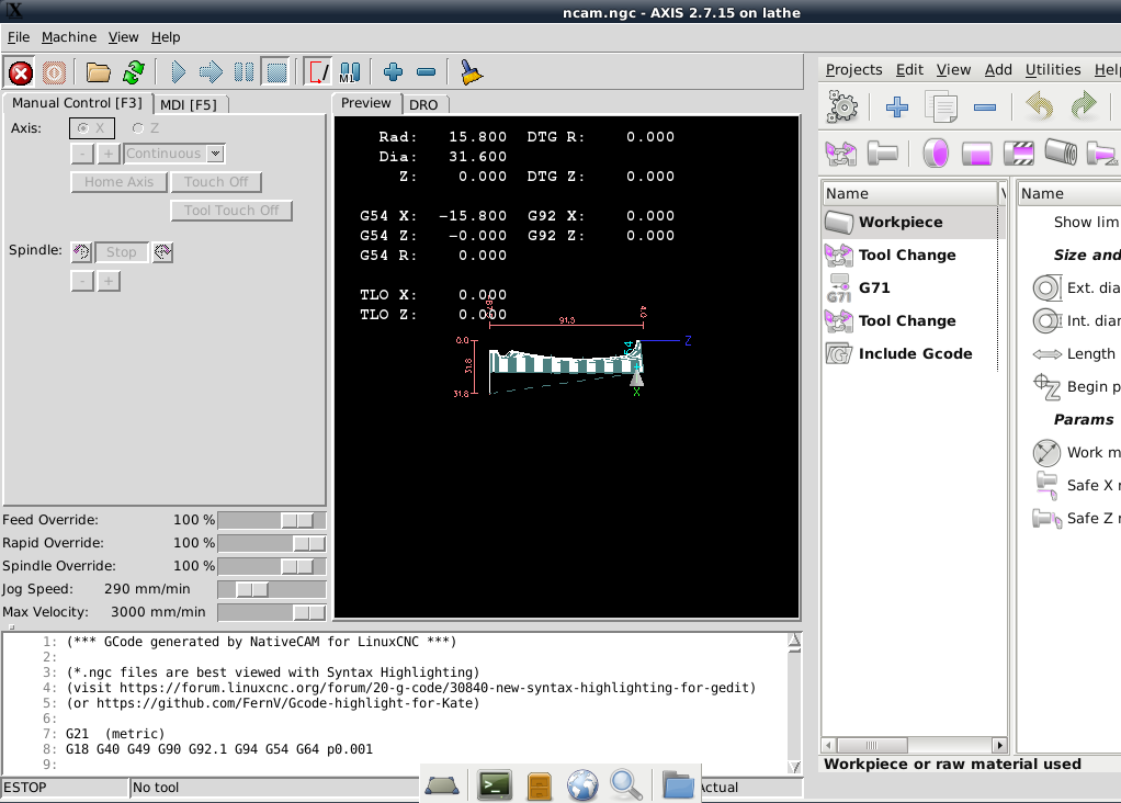 In other words: The Total Window Size = Panel 1 (Linuxcnc Axis on the left) + Panel 2 (NCAM on the right). .axisrc only modified the size of Panel 1.
