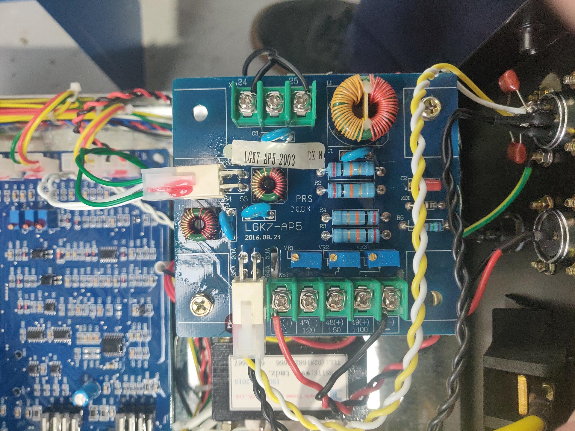 Voltage divider board in the plasma source.