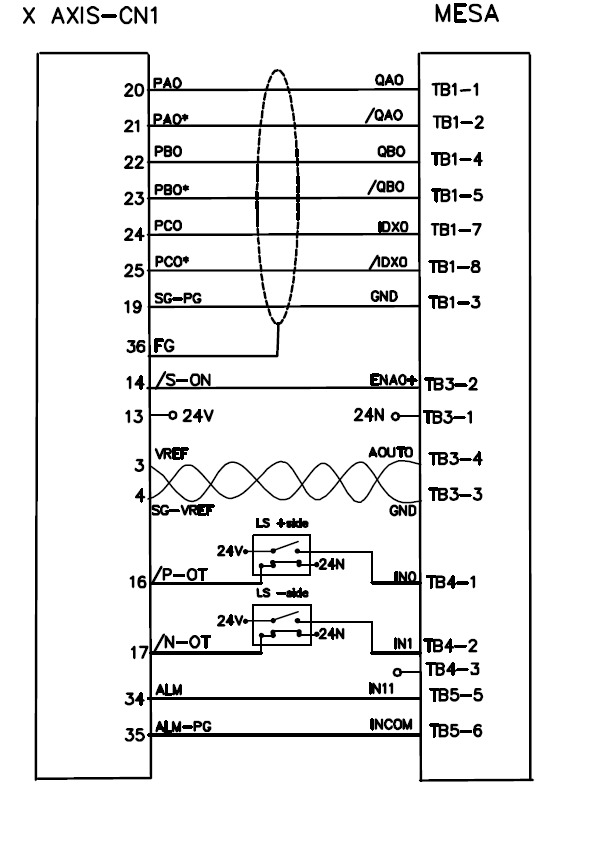 This circuit is done as per recommendation on drive manual. +5v from 7i97 is not connected to drive . only GND is connected for reference.