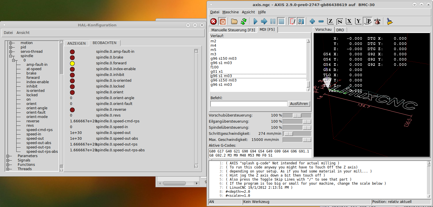 (you can see that LinuxCNC is commanding a near infinite spindle speed)