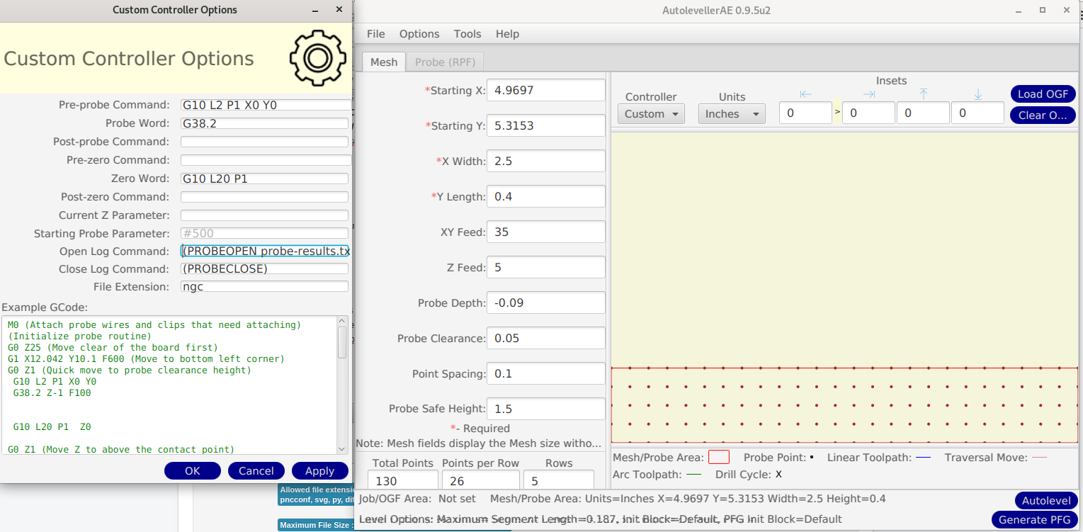 5 Enter the rest of the parameters in Autoleveller, generate PFG, save somewhere, say ~/linuxcnc/nc_files.