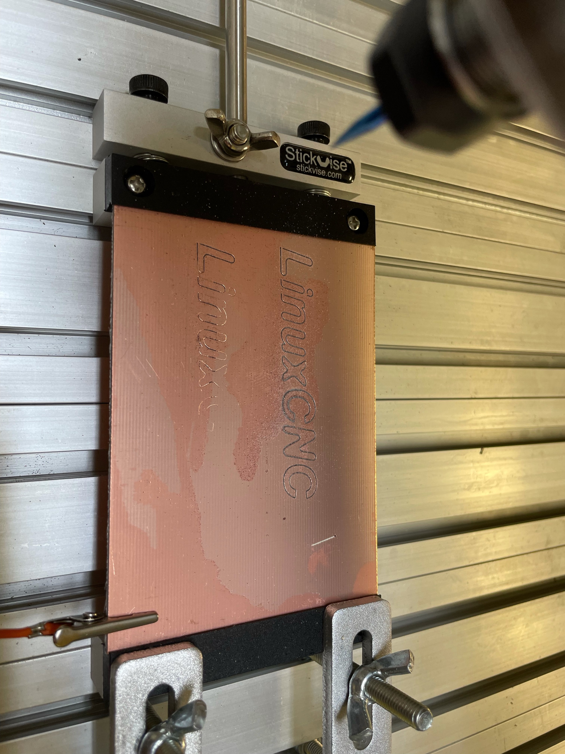 7 Load your working G code to Linuxcnc, set your work origin to your intended X0 Y0 (say use G10 L20 P1 X0 Y0 to set current position to G54's X0 Y0)