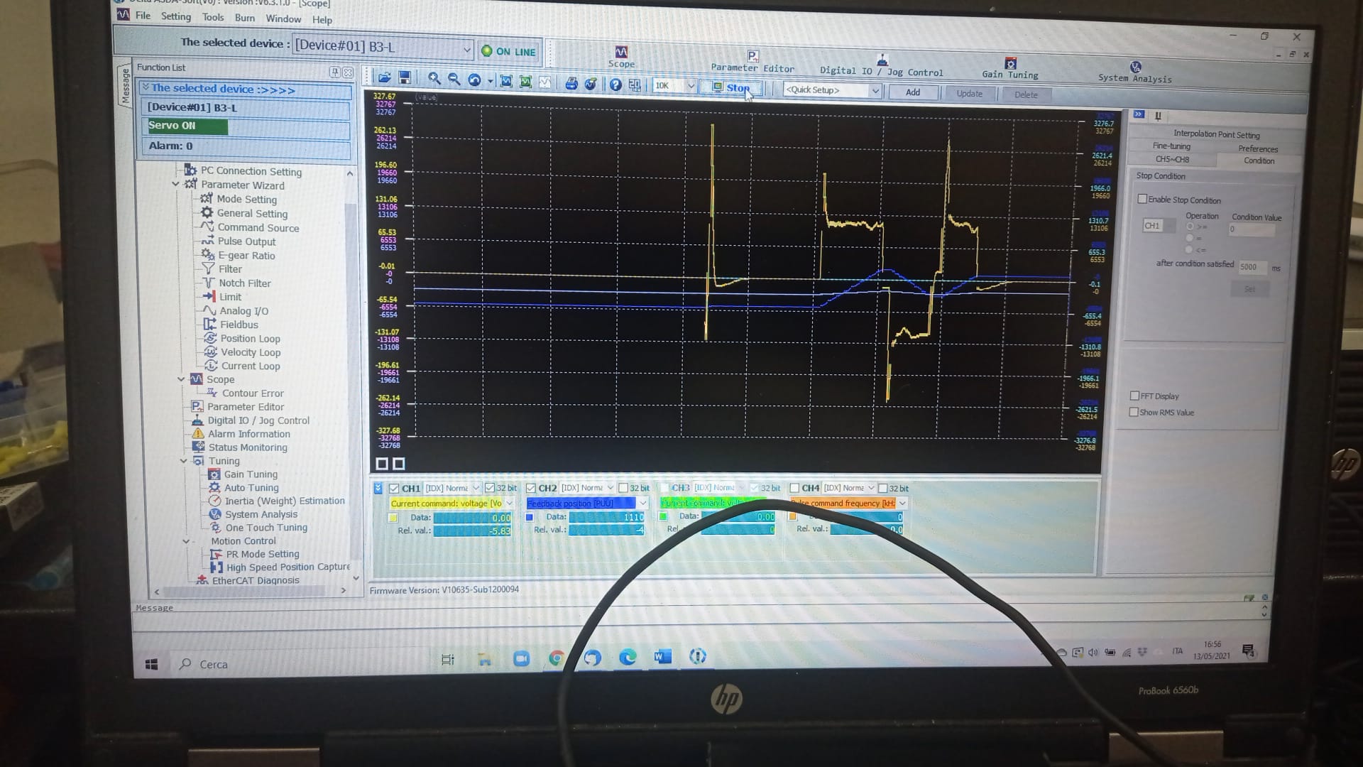 I checked the parameter P-046 that you suggested and I found it "97". I'm becoming crazy because I can't understand if the issue comes from the wiring, or from some delta driver parameters, or from something else coming from linuxcnc. It's really frustrating,