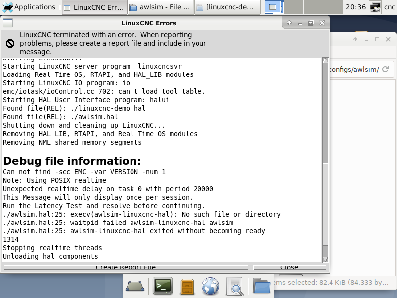 The specific files for linuxcnc that I am currently trying to use are exactly as posted in the examples section. I think if I can get the example to work past the posted issue in the picture, I can modify my files to make them work.