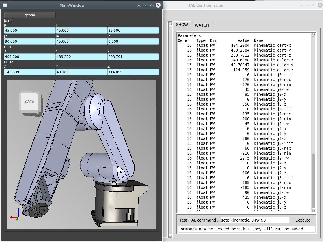 My first attempt rotating the machine by setting joint hal rw parameters with forward kinematics.