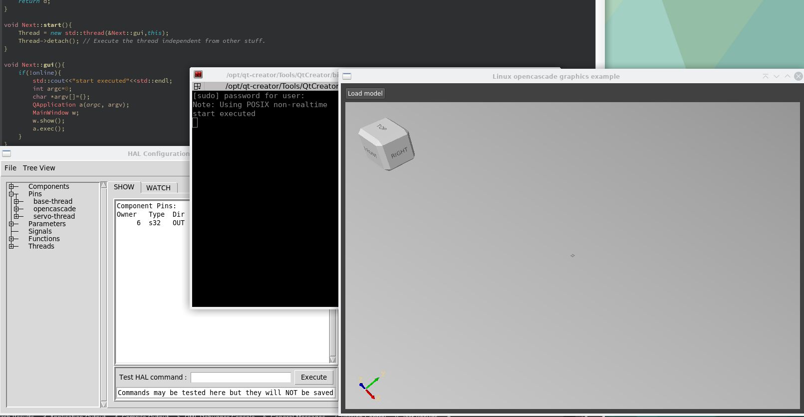 And it start the opencascade screen in a separate thread. I had to write some unusual