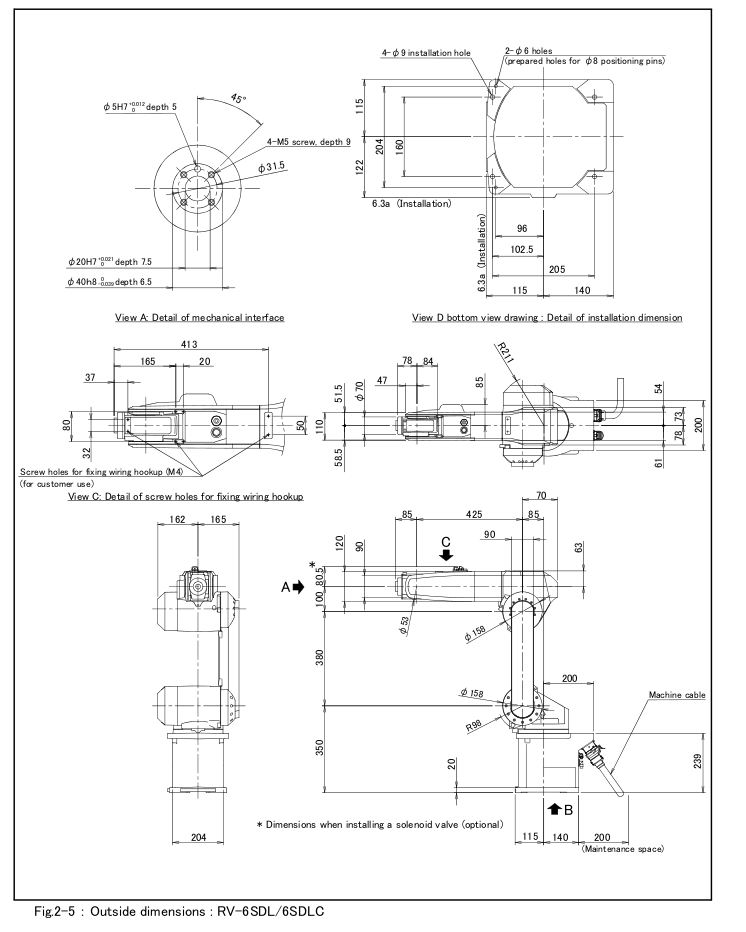 Joint Limits in respect to "home" position as depicted in the 'RV-&SDL-Dimensions' Document below: