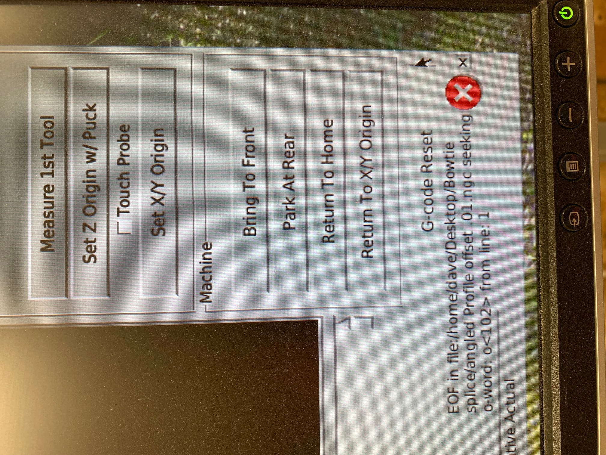Getting an error message when trying to run a touch off routine via a pyvcp button. This has just started and had been working for a couple years. I have 2 subs not working and the rest work fine. Have not edited anything recently to effect these either. It appears that it is looking in the currently open file for the sub, but it is totally separate.