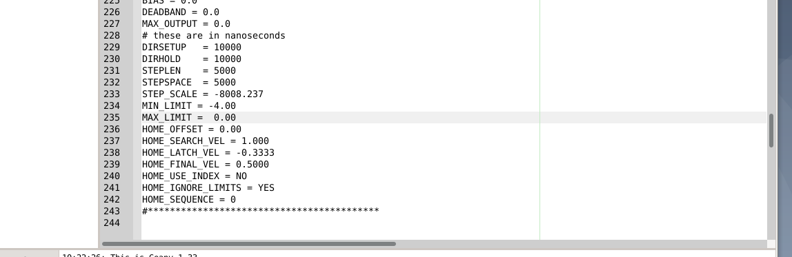 I tried to make the changes you talked about and it did not go well. BY this if I changed either the Max limit of Min limit it would not start QTPlasmaC but show an error seen in the screen shot. There seems to another location that also needs changed (to my untrained eye). I also attached a screenshot of the Hal for the Z switch lines, not know if that helps. Also the page in the Pncconf as to the switch selection for the Z axis.