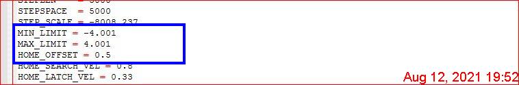Thanks PhillC what you say makes sense, and I had read that info. But not speaking Linux I don't understand what the setting should be. My home and upper limit are at the top..I have about 4" of travel between top and bottom limit stops. I think the 0.5" is what I thought was the back away from the home position. I assume that there is an automatic distance for it to back off the home switch, and I don't need to give it a distance. Again I am using info that worked for Mach.