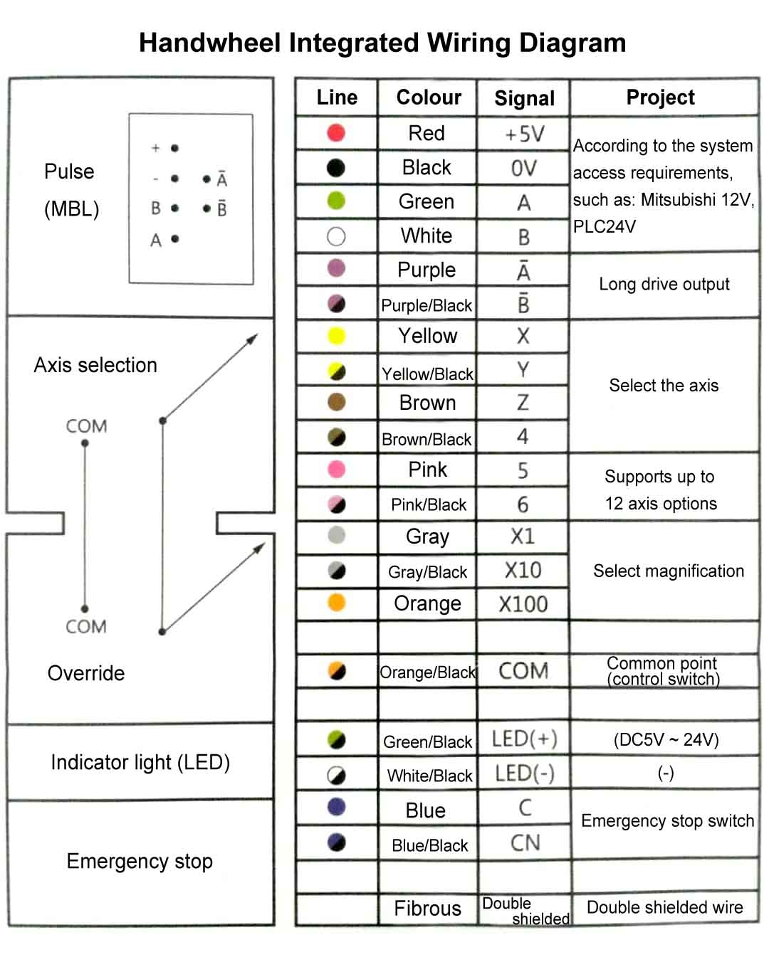 The 7I76 MPG inputs (on TB5 pins 1,2,3,4) only support single ended inputs