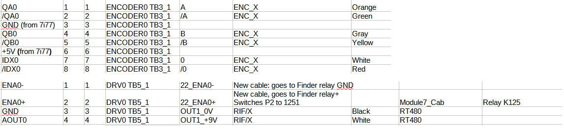 - 19, 20, 33, 34, 35, 36 are encoder outputs from drive to Mesa