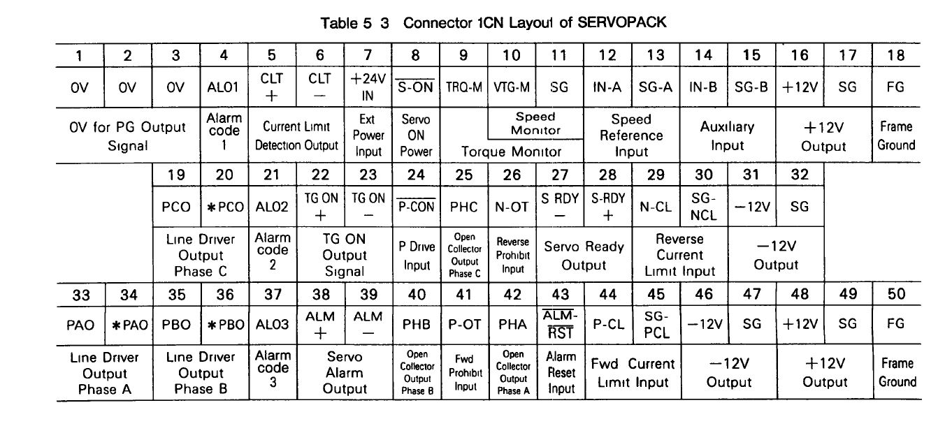 Do you have the identical yaskawas or another Type? Because the CN1 Connection is onaly for this Yaskawa - i have another datasheet for the P-Version and it is total different... So be aware of using wrong datasheet!