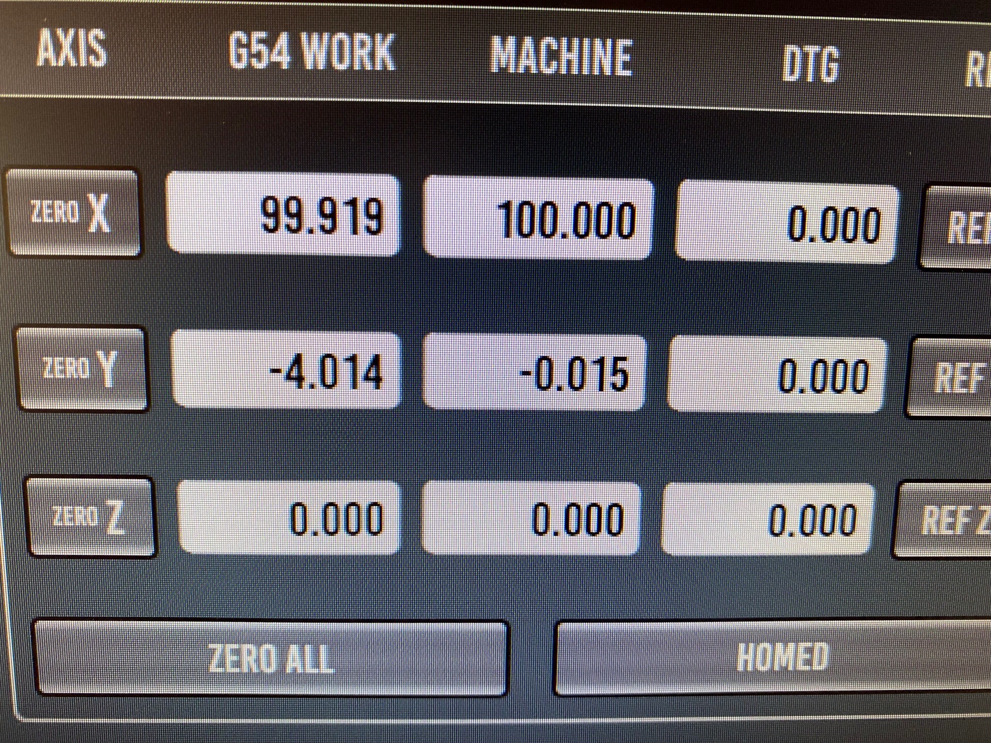 then I jogged the X-axis 100mm. The machine coordinates have not changed, but the workpiece coordinates (Figure 2).
