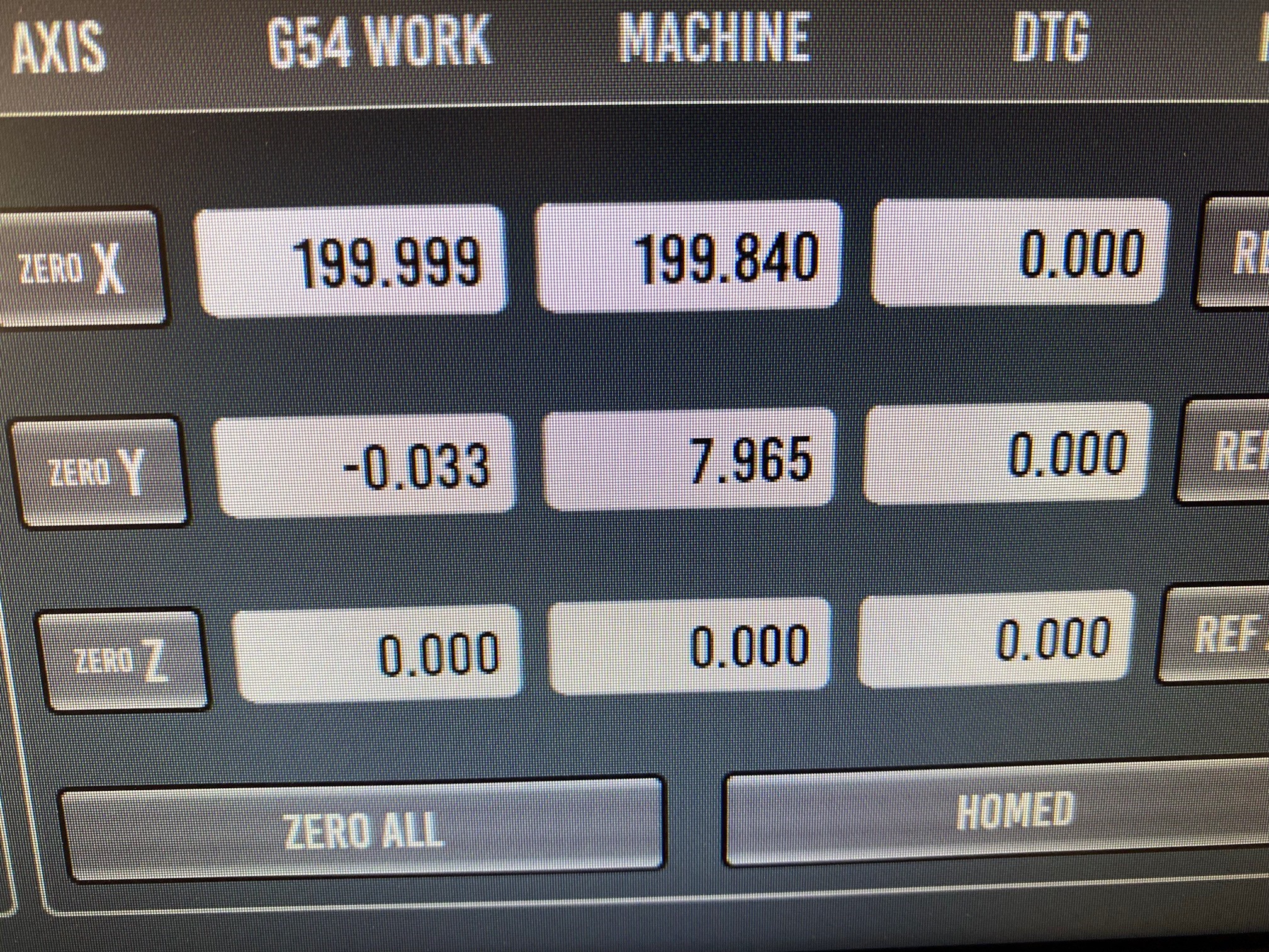 If I move the X-axis with MDI commands, in this case 200mm, the Y-axis moves by almost 8mm (Image 3).