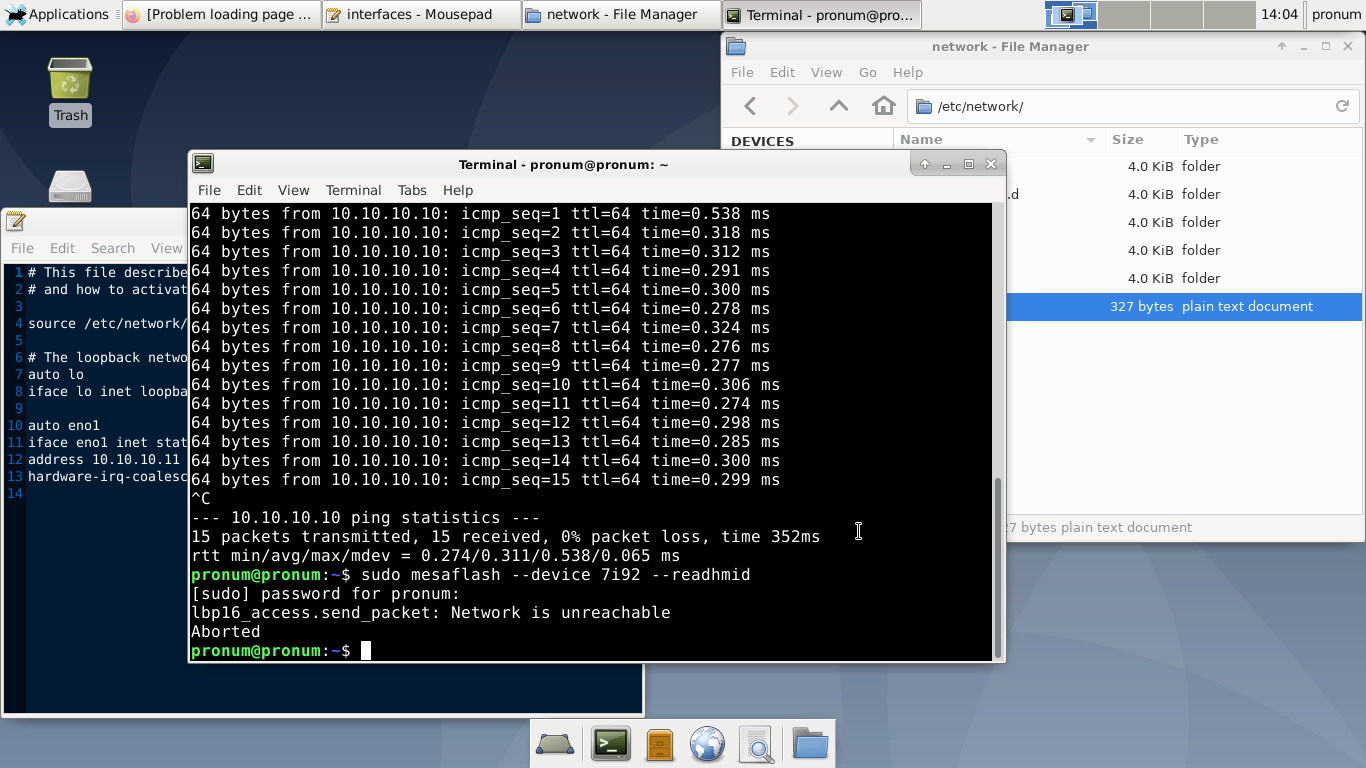 Replied by PCW on topic lbp16_access.send_packet: network is unreachable