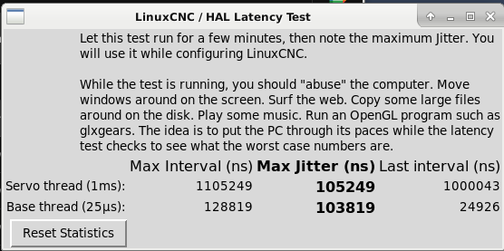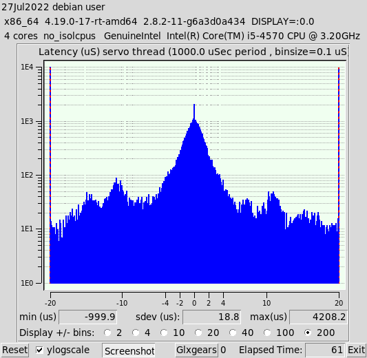 If he's running preempt-rt, shouldn't it say "Note: Using POSIX realtime"? Mine does:Also from the terminal while histogram was running: