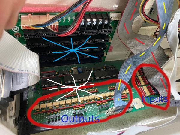 Then you can remove the pc-motherboard, the processor board and the interconnection board (the one with all the large black connectors). The easiest would be to buy terminal boards for each of the two ribbon connectors (like the ones you got for the db25 but with different connectors) and wire the signals from there to the new breakout board.