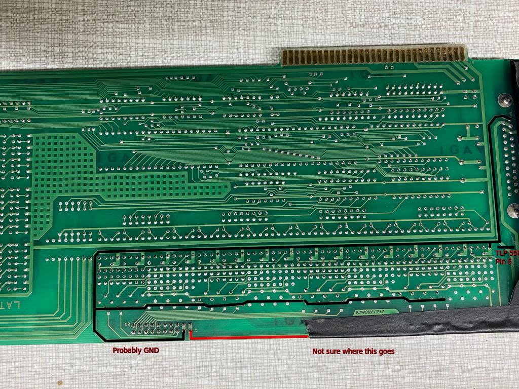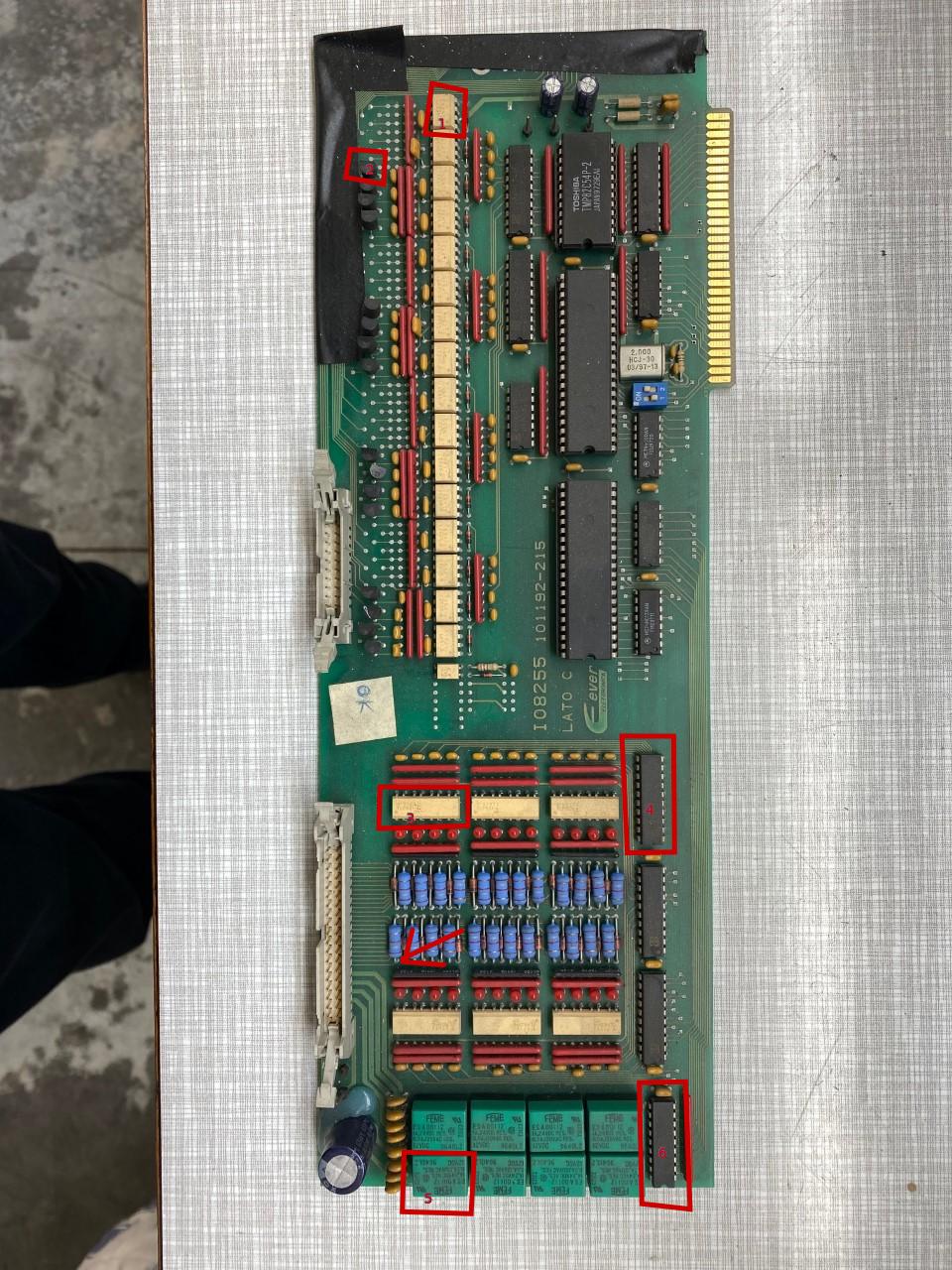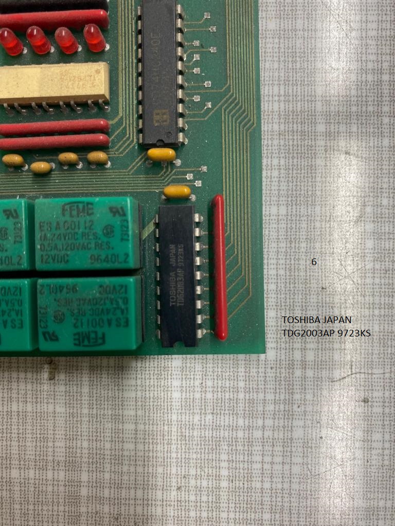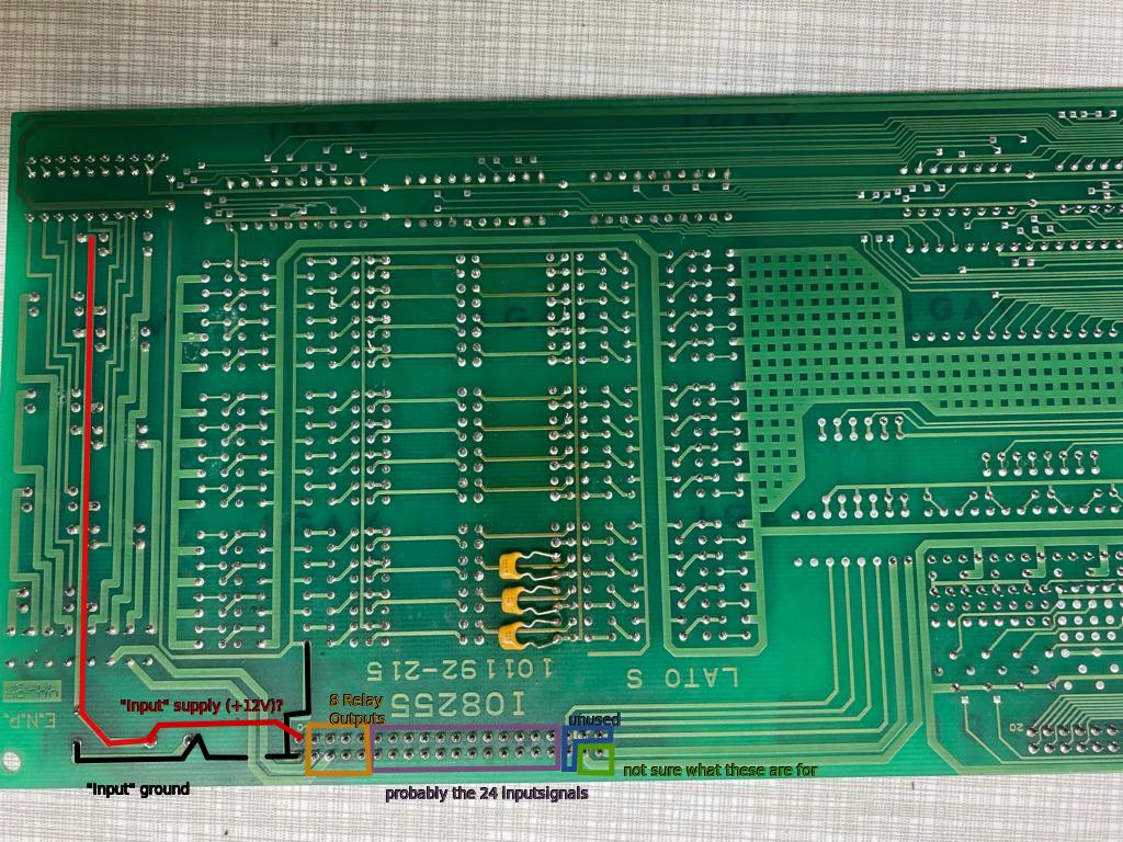 Those LEDs (shiny round red parts in 6 groups of four beside the yellow ICs) are going to be very handy to figure out which input is connected to which sensor on the machine. Once you have the pins of the 40pin connector traced to the resistor you will know which pin is active by looking at which LED lights up when running the machine.