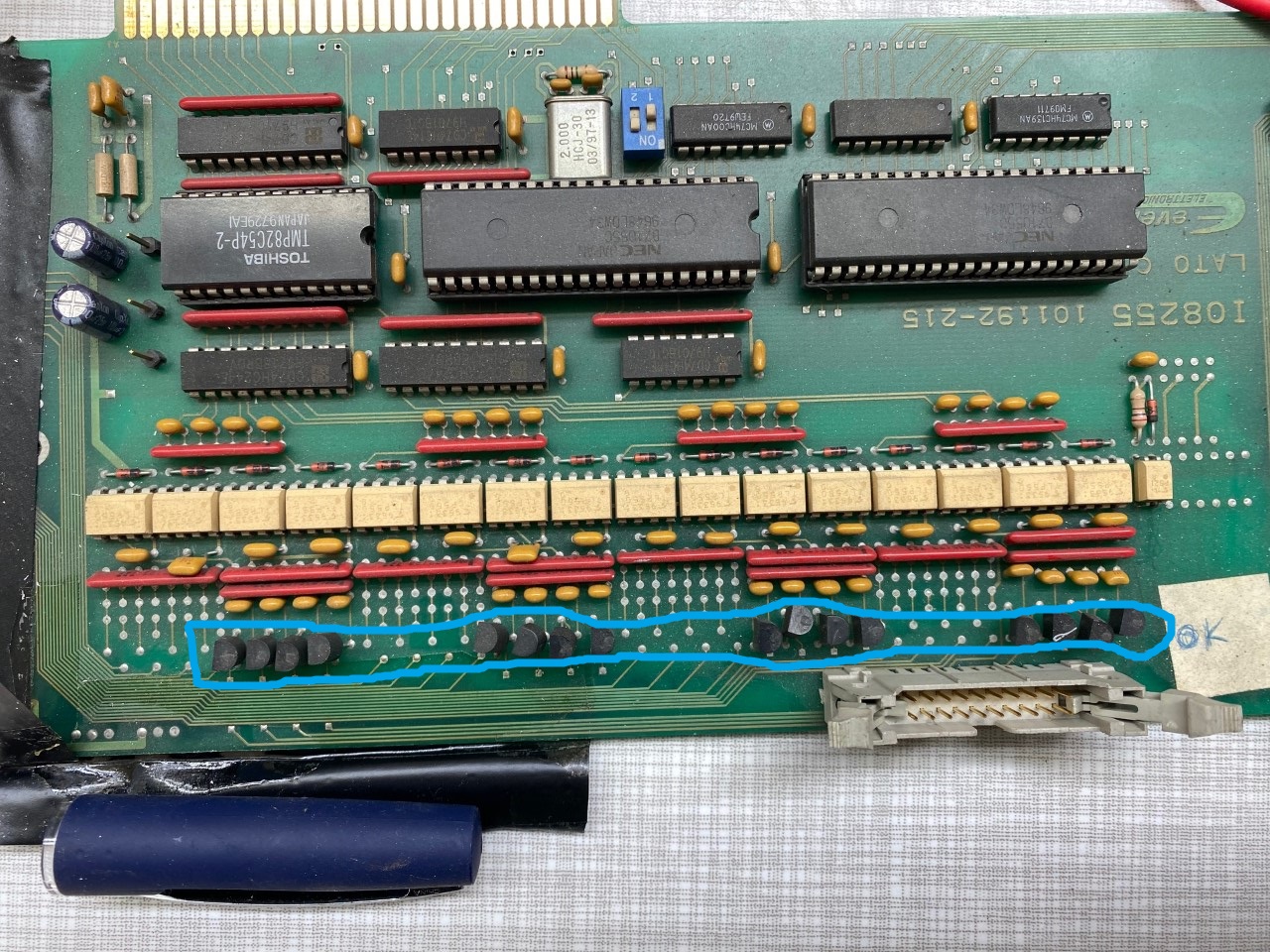 Mythical guys!!! I ran the continuity tests and immediately found the connections. As Aciera claimed, the pins were the upper ones (red), and on the lower pins (yellow) all the transistors share pins 2-12 of the IDC20 flat cable. I have marked the other links. I update the photos of the card. How can I proceed with the inputs? Have i tried circling them in blue, i found their pins but they are few, the cable is IDC40. A good sunday for you!! Thanks