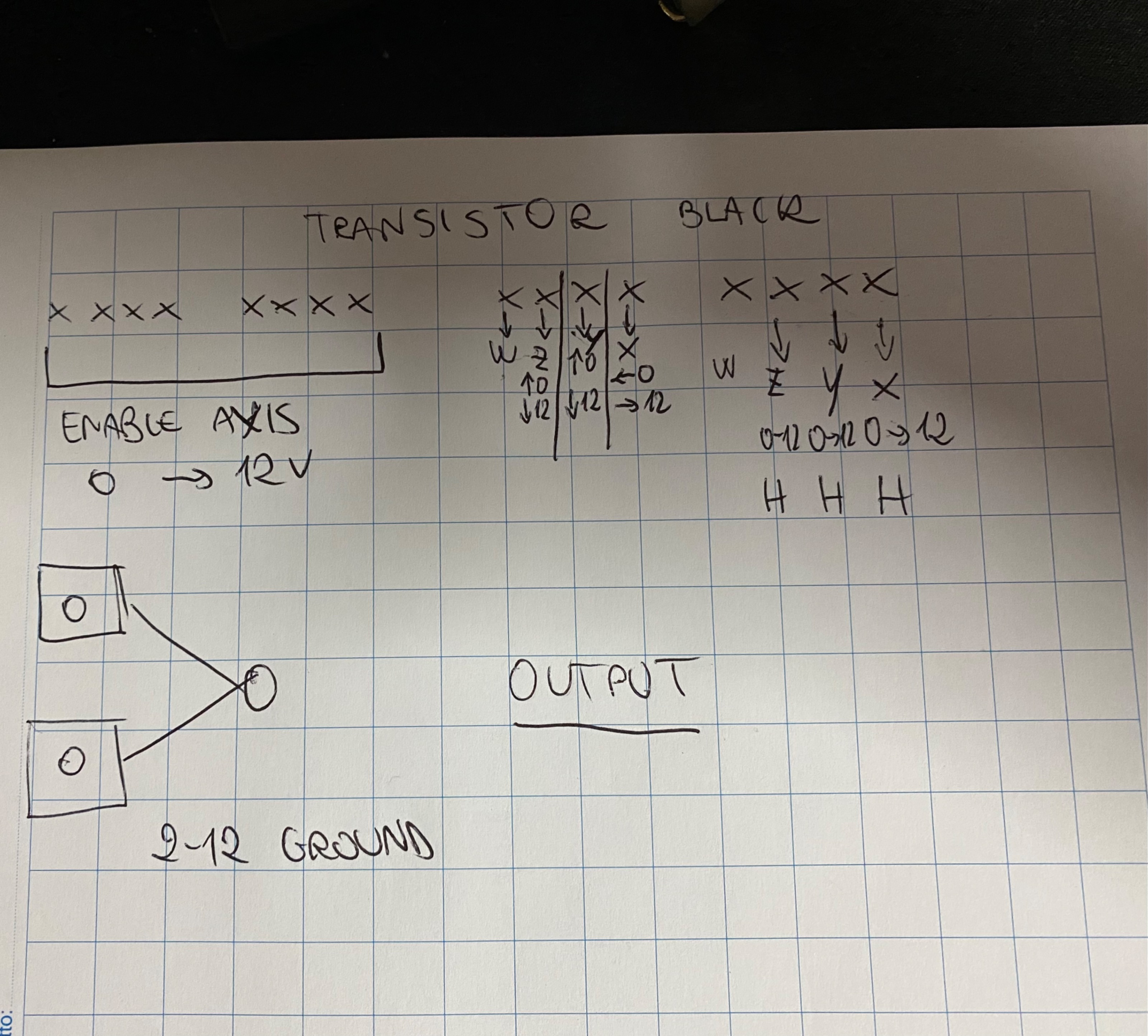 For the central transistors, on the other hand, the value goes to zero if the jogging is negative on the axis and goes to 12v if the jogging is positive on the axis.