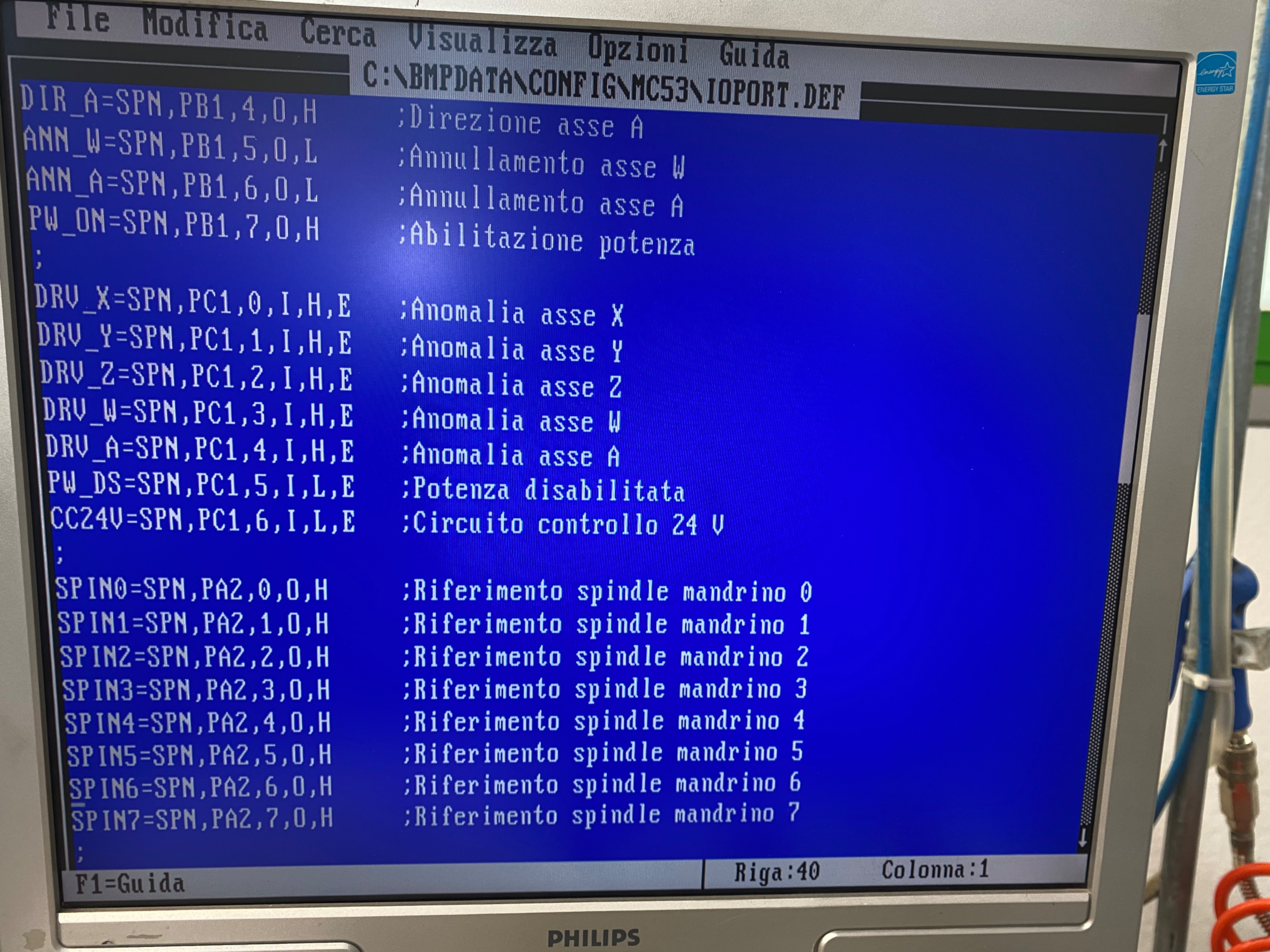 The boards behind the push-button panel are difficult to access if I don't disconnect the whole panel ... I'm afraid then I won't be able to reassemble everything correctly. I see what I can do! I found in the software a draft of the drives required by MC53, they refer to the updated version (i.e. the one of the wiring diagram), in this older machine there are fewer, there are no lights and the advance potentiometer is missing, there is only for the spindle.