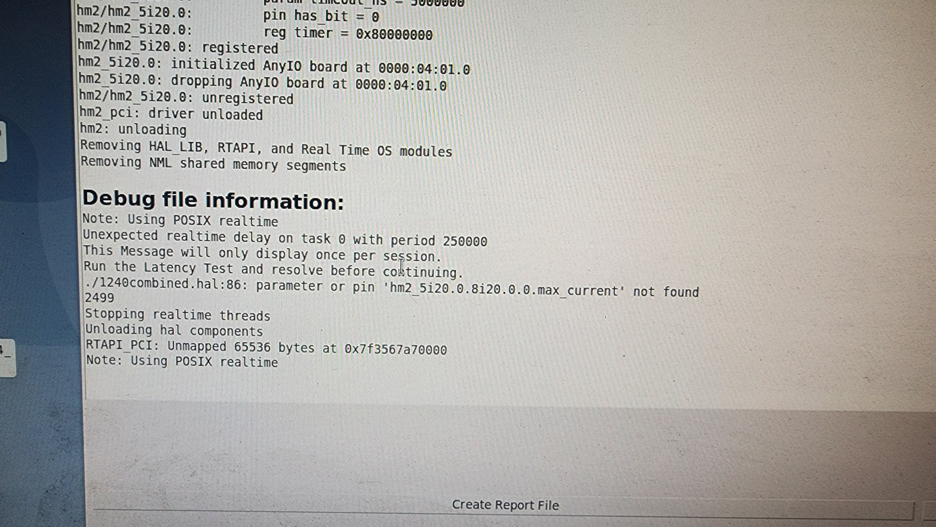 OK, I moved the files and now I get a new error relating to 1240combined.hal max current. I ran latency test as it said, but I didn't see it matter. Attached are the error and section from 1240combined.hal file