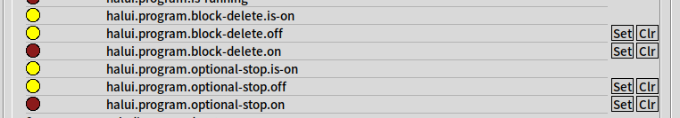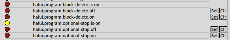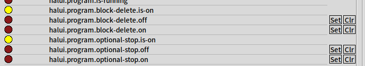 The result should be that the halui.program.block-delete.is-on FALSE and halui.program.optional-stop.is-on FALSE. It doesn't work as we wish.