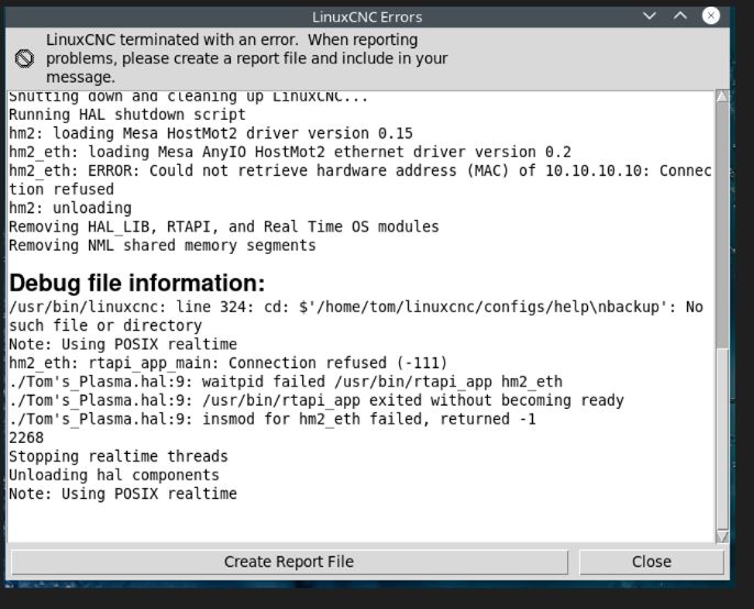 Backups of QTPlasmaC and QTdragon will start up but not the original QTPlasmaC or Axis. I did a reconfigure for both and still will not start up for those 2.