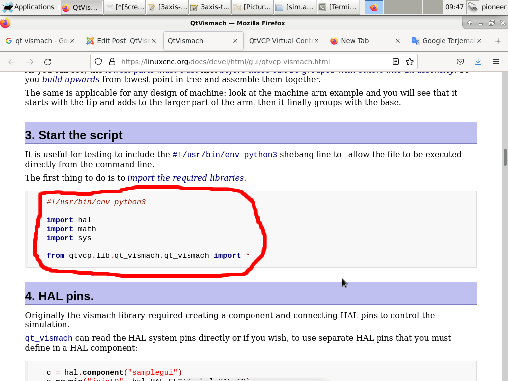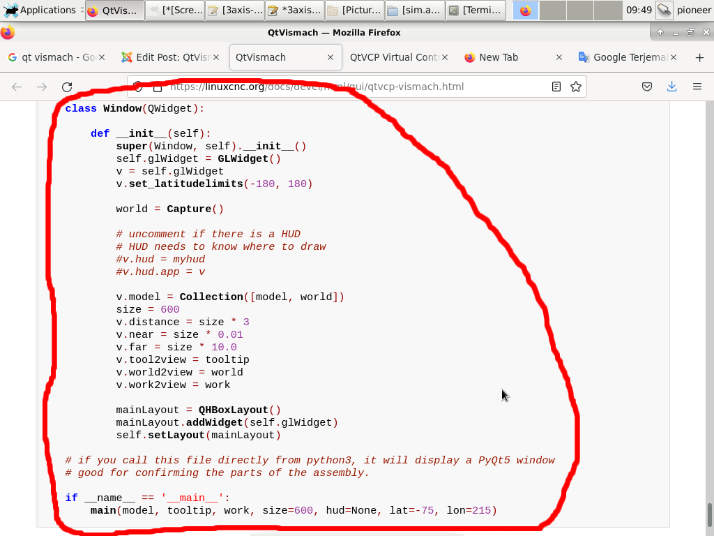 Ok.. i have installed debian 10. but i can't move vismach simulation to axis tab like your example..please guide me step by step, what should i do?
