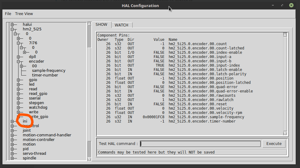 INI HAL pin. Look in Halshow.