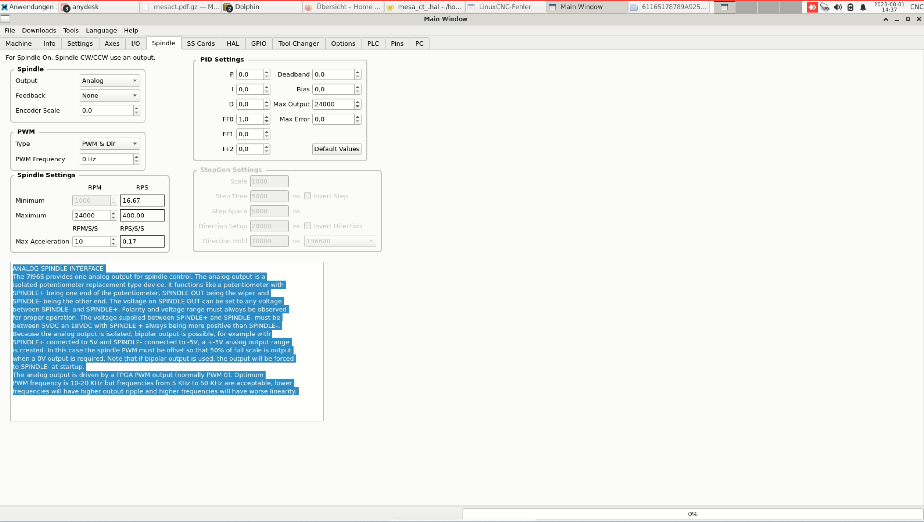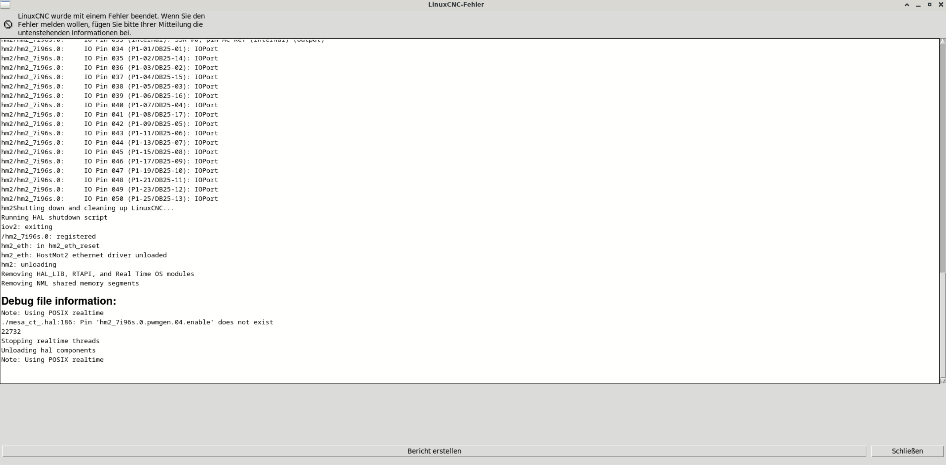 But as soon as I try to integrate my spindle via MesaCT LinuxCnc starts with an error message.