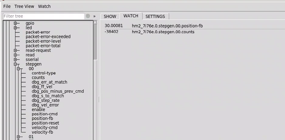 Hi, Apologies, did some more testing. If I start at ABS of Zero then Job axis 5mm at a time slowly (ie 100mm/min) every 3rd or 4th jog the counter will increment by .001 ie instead of reading 15.000 it will read 15.001, then if I keep joging it will then stay with the .001 until 35 then it will read 35.002.After some more testing here are my job results (jogging at 30mm/min and incr of 5mm)starts at ABS 0 G54=00->5->10->15->20->25.001->20->25.001->20->25.001->20->25.001->30.001...all .001 till 70.002jogging -ve from 70.002->65.001 ...all .001 til 25.000 .. all the way back to 0.000Feels like some sort of rounding / fp / devision error creaping inI have attached a HALShow screen - after joggin in cnrements of 5mm the first count was correct at 6400, then after a few it added an extra count then another at 30mm so now shows 30.001 as it must be rounding upHope this helps