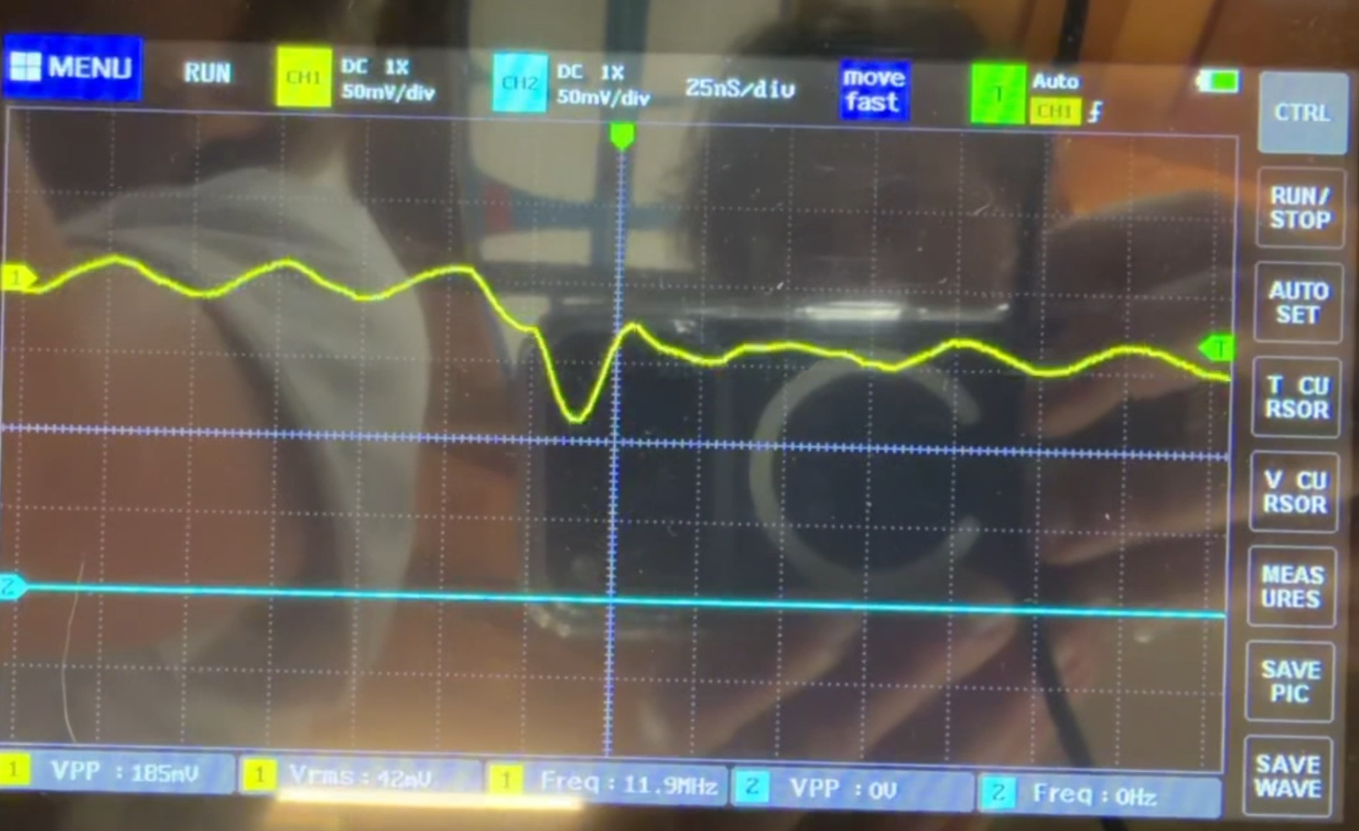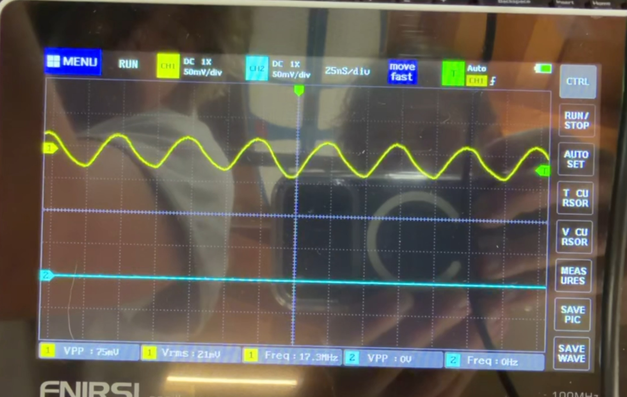 Hi, I'm trying to get my motors running with LinuxCNC, and I have an old controller for the machine that can move the motors, but the card reader on it is broken. I have tried many times to get it working with LinuxCNC, but now I've tried to diagnose it with an oscilloscope on the old controller. For the x-axis output, the step pin outputs a constant 20MHz signal when not being told to move, but when being told to move, it outputs a 12MHz signal. Image 1 is the motor not moving (Consistent wave), and image 2 is the motor moving (weird-looking wave). I took a video of them side by side and is linked to a google drive. If anyone knows how I can replicate this signal/frequency in LinuxCNC, that would be greatly appreciated. Thanks. Link to video --> drive.google.com/file/d/1qQ6TFAT_yjkfDdm...Lns/view?usp=sharing