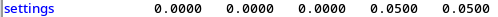 (returns tuple of floats) - current interpreter settings. settings[0] = sequence number, settings[1] = feed rate, settings[2] = speed, settings[3] = G64 P blend tolerance, settings[4] = G64 Q naive CAM tolerance.