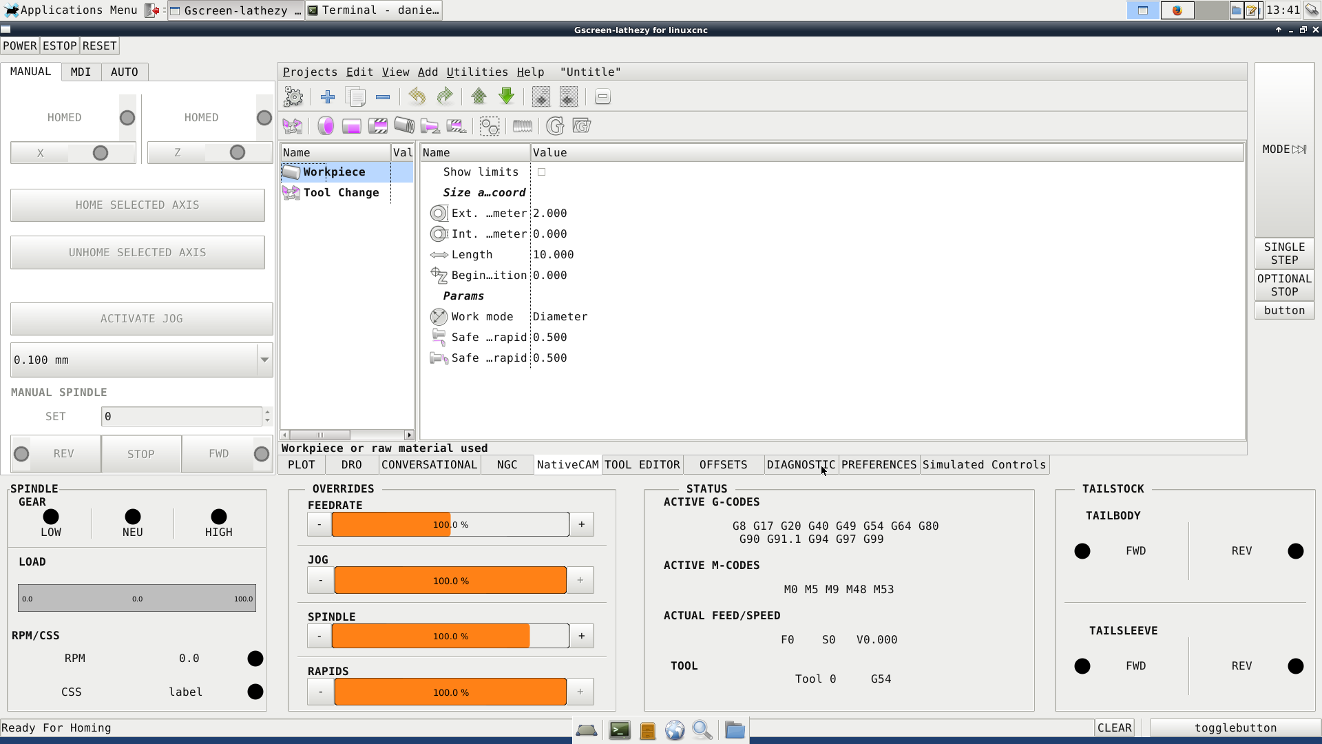 Also, NativeCAM is embedded in a tab, and I have managed to figure out a few leds as you can see. However, I am a little unclear about how to access the status, command, and error channel if the info that I want access to is not in gscreens data class. For example the joint dictionary or how to tell if the interpreter is idle before one of my buttons does something? As well as how to update everything when the screen starts up and the operator hasn't pushed a button or anything.