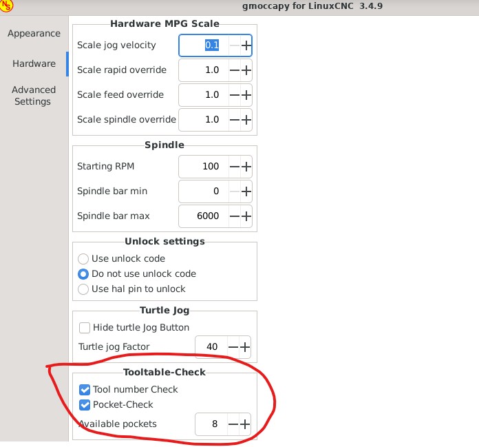 I've adapted it for my case, maybe someone else can use it too.In the settings, you can enable or disable the check and set the number of pockets.(Gmoccapy 3.4.9 LinuxCNC 2.9.6)