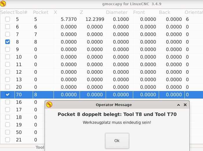 In the tool table (gmoccapy), I can assign multiple tools to a pocket.