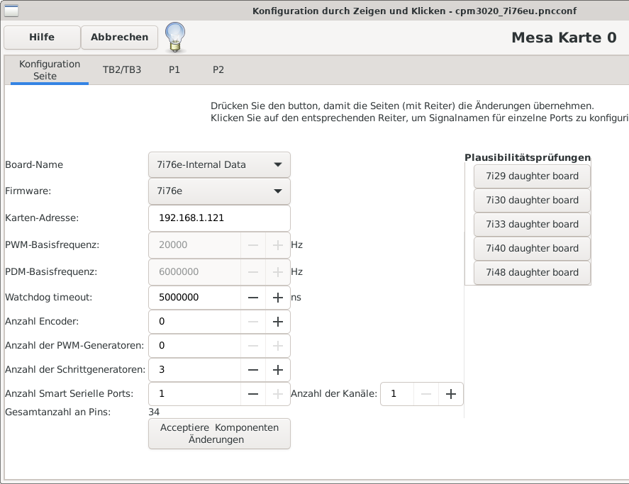 Gerne, aber ich bin noch nicht sicher ober der Parameter "7i76 Modus 2 I/O card" so richtig gesetzt ist oder ob ich Linux doch noch auf "UTF-8 EN_US" umstellen muss.