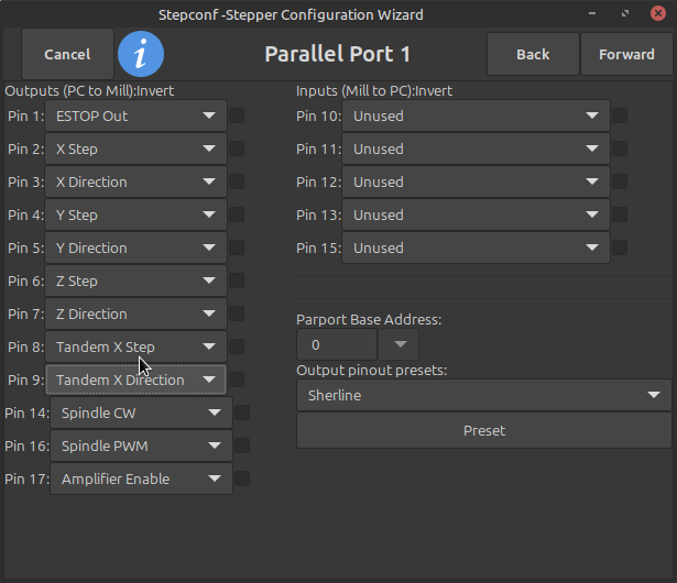 P.S.: I'm using LinuxCNC 2.9.4 on an old PC with a parallel port.