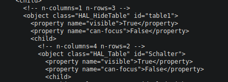 #setp gladevcp.table1 1Shows an inactive panel because 'HAL_Table' (with id=schalter)) is not set True by any signal.