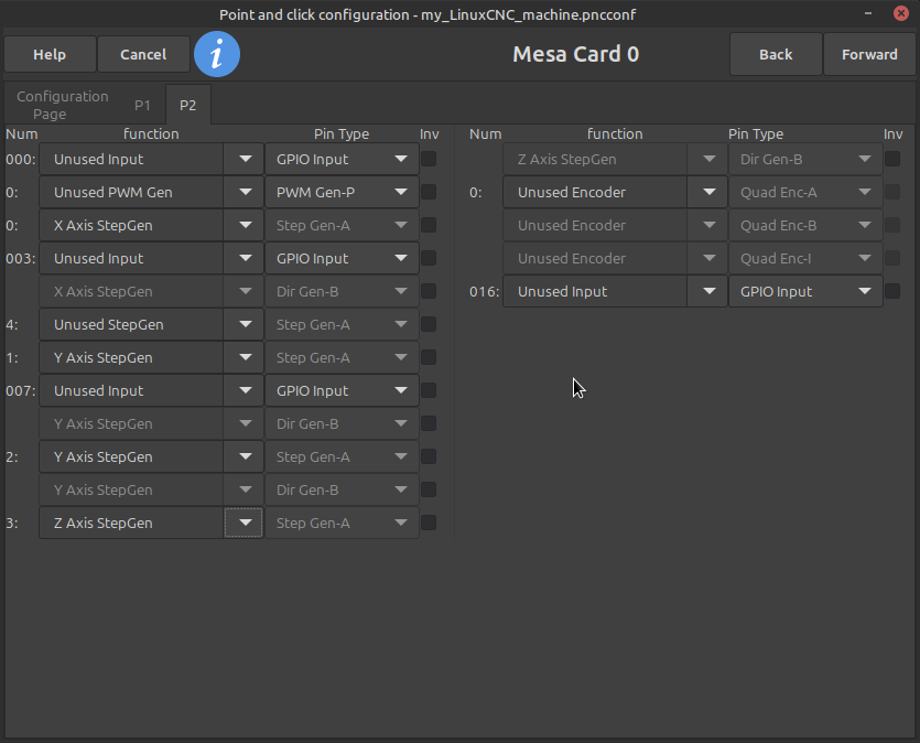 Thank you Tommy and Djdelorie, i appreciate your help so far, i had a few minutes and disconnected probe and assign individual pins and did not work but i did not have much time and I will be away form the shop probably till Tuesday (which sucks because i want to convert this machine so bad) but i like the idea of only using 2 pins this way ill end up opening one output. and ill get back here to report how ever i did not find the option of assigning multiple stepgens to one pin so i assume it will have to be done in .hal and .ini??!! ill include those once i try (if i get a chance ill sneak in the shop on Sunday (fiancé permitting lol)