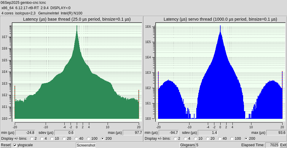 Once I re-applied the correct BIOS settings, the latency results improved considerably. While it's still not quite as good as what I get with my Debian 13 setup, it's much closer now. This seems to reinforce just how well LinuxCNC performs on Debian 13 — especially considering that my Debian system has full driver support, including for sound, whereas your Gentoo distro doesn’t include those drivers by default. When I disable the sound drivers on Debian, I get even lower latency, though honestly the out-of-the-box performance is already excellent, so no need to disable them.